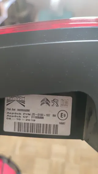 Piloto trasero derecho para Peugeot Rifter. Atención: Tiene un roce que se puede apreciar en la tercera foto hecho por la puerta de la cochera .Se puede pulir perfectamente ya que es muy superficial. Le rozó la puerta de la cochera. - Pieza de recambio para el vehículo. - Diseño específico para el modelo Rifter