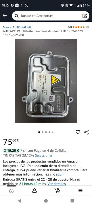 Me compré esta bombilla para un seat leon 2 del 2006 porque me falló el faro pero al ver el faro nos dimos cuenta de que era un problema de conexión del cable y no de la bombilla. Esta totalmente nueva a estrenar y sin sacar de la caja.