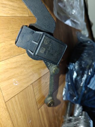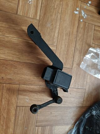 Sensor de altura para faros de xenón de Mercedes-Benz CLK W209. Se encuentra en buen estado, aunque presenta algunas señales de uso. - Pieza usada, original Mercedes. - Ideal para reparar o reemplazar un sensor dañado. - Incluye el sensor y su brazo articulado.