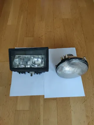 Dos faros de coche, uno rectangular y otro redondo. El rectangular es de Fiat, lleva dos lámparas de alogeno H 3 Tiene una fisura en el cristal en el lado derecho, pero no le afecta,no le entra agua ni nada, funciona bien. El redondo no se de qué coche es, está bien pero hay que ponerle una lámpara. Los doy muy baratos. Los dos por 2 €. - Faro rectangular con doble óptica. - Faro redondo con reflector.