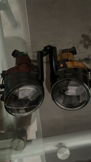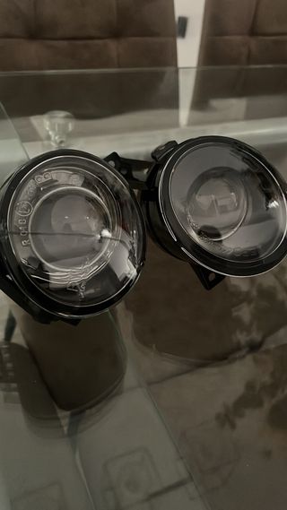 Faros antiniebla para Volkswagen Touran del año 2009. Se venden en pareja. uno de los faros tiene una pequeña grieta por lo demás están intactos - Diseño circular. - Lente de cristal. - Carcasa negra.