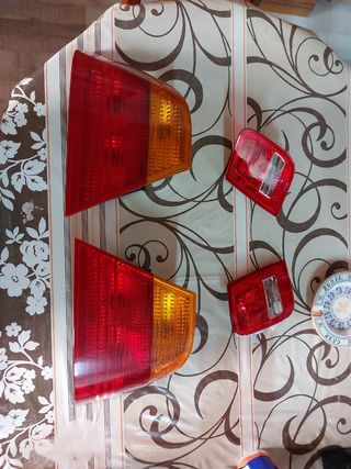 Se vende conjunto de pilotos traseros para BMW E46. Están en buen estado, aunque con algunas señales de uso. Incluye pilotos traseros derecho exterior e interior con sus portalámparas, y del lado izdo. Esta el portalámparas del piloto exterior y el piloto interior. - Dos pilotos traseros. - Modelo BMW E46. - Color rojo y ámbar.