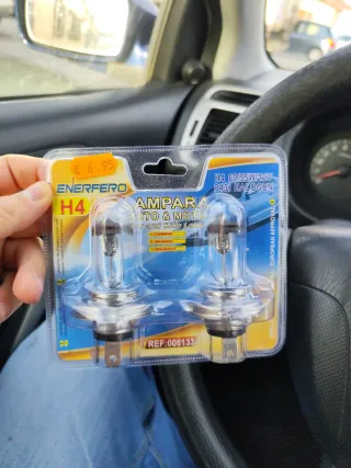 Pack de dos bombillas halógenas H4 de la marca ENERFERO. - Modelo: H4 60/55W 12V P43t HALOGEN. - Referencia: REF:006133. - Aprobación Europea. Las compré por error no le valen a mi coche. Solo he abierto el blíster pero no sé han tocado.