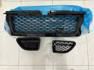 Juego de parrilla frontal y rejillas laterales para Range Rover Sport de los años 2005 a 2009. Piezas de color negro brillante. - Parrilla frontal con diseño de panal. - Rejillas laterales con detalles en negro. - precio negociable según condiciones - jamas han estado puestas en el coche