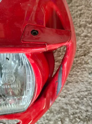Careta luz delantera de Rieju RR castrol, está pintada de rojo, no es pintura original. Tal y como se ve en las fotos