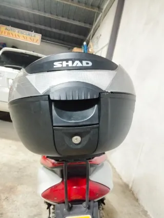 Soporte y baúl top case Shad SH 33 para Yamaha Jog ideal para reparto. Ambas piezas están usadas, pero en muy buen estado. Tiene sus 2 llaves.