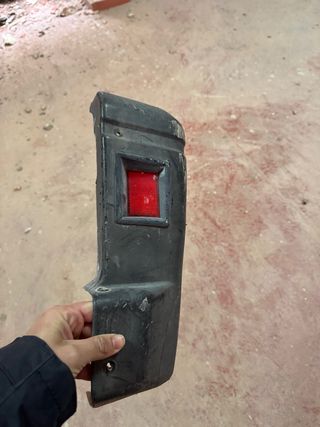 Puntera derecha para el parachoques trasero de un L300. Pieza de plástico negro con un reflector rojo. - Material: Plástico. - Color: Negro. - Incluye reflector rojo.