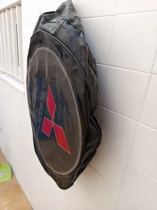 Funda para la rueda de repuesto de un Mitsubishi Montero V60. Sin golpes ni arañazos. Se pintó el coche y se prescindió de ella por cambio de medidas de ruedas