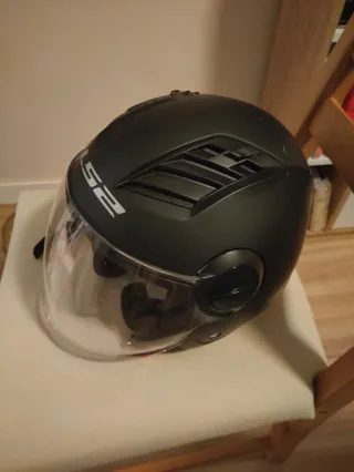 Casco de moto tipo jet de la marca LS2. - Talla XL. - Color negro. - Funda incluida.