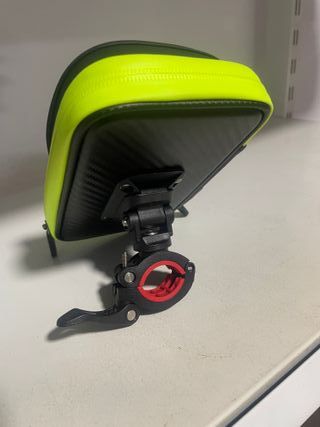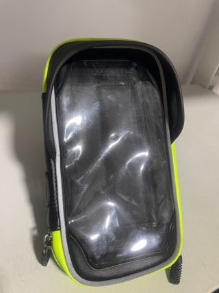 Funda impermeable para móvil con soporte para bicicleta. Ideal para proteger tu dispositivo mientras pedaleas. - Diseño con ventana táctil transparente. - Color neón llamativo. - Cierre de cremallera.