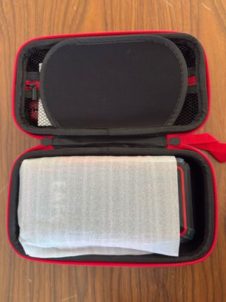 Arrancador de batería portátil con estuche modo funda. - Potencia de Corriente: 2000A - Marca: EAFC - Color: Negro con borde rojo - Admite vehículos de gasolina de hasta 6L y vehículos diésel de hasta 4L. - Estado: Nuevo, sin estrenar