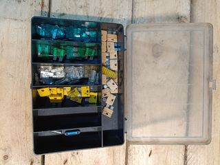 Estuche de fusibles JBM con 244 unidades. Está en buen estado y listo para usar. - Incluye 244 fusibles de varios amperajes. - El estuche es transparente y permite ver fácilmente los fusibles. - Ideal para tener a mano en caso de avería.