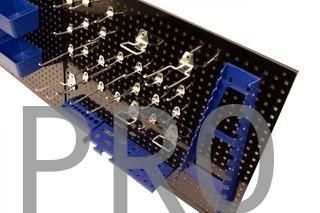 KIT 2 PANELES PERFORADOS C/ 32 ACCESORIOS Medidas: 550x455mm Espesora: 0,5 mm Cantidad Descripción (32x) Accesorios (15x) Ganchos simples cortos (5x) Ganchos simples largos (2x) Ganchos dobles (3x) Ganchos de bucle (4x) Cajas de plástico (1x) Soporte llaves (1x) Soporte destornilladores (1x) Suporte taladros
