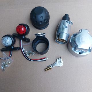 Todo Nuevo sin estreno,para remolque, caravana, furgoneta, autocaravana, luces de posición, enchufe y clavija, Llave de seguridad gancho, protector silicona bola, anclaje conector macho.Tambien se vende por piezas sueltas.