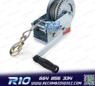 Móvil: 664 856 334 - Referencia: RLC012057. CABRESTANTE PROFESIONAL 1500KG Y 10 METROS Cabrestante manual con cable de 10 metros / a 1500 Kg Cabrestante manual profesional con cuerda de alambre Fuerte fuerza de tracción de hasta 1500 kg Fácil tracción de la carga gracias a la gran transmisión de potencia mediante manivela Cable extra largo: 10 metros Con gancho práctico y resistente para una fácil fijación Para tirar, por ejemplo, de coches, remolques, caravanas, etc. Dimensiones: Longitud (sin palanca): 260 mm Altura: 190 mm Ancho: 160 mm Longitud del cable de acero: 1000