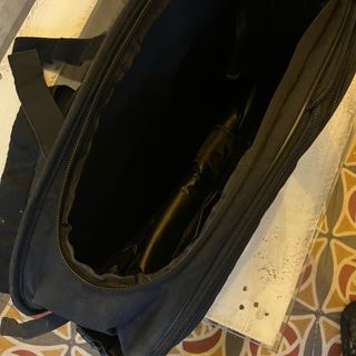 Bolsa sobre depósito oficial de BMW, para modelo BMW Ninet 2013-2022. La bolsa No está nueva, tiene ya unos 8 años. No dispongo del anclaje de sujeción de la cincha bajo el asiento que debería haber, yo la amarro con unas bridas, ya que tiene ganchos, además, uno de los ganchos está roto tal y como se observa en las fotos. La venta incluye las correas de sujeción de la cincha al tren delantero o chasis, no aparecen en la foto porque las tengo instaladas fijas en la moto. Le tuve que reparar el compartimiento frontal de plástico transparente con cinta. Ver fotos.