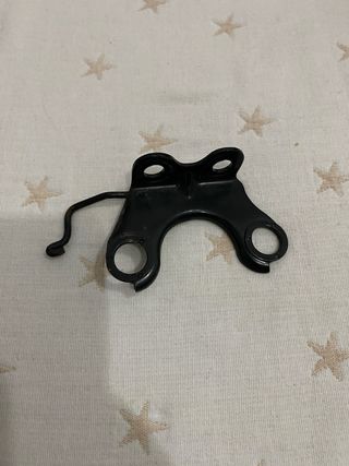 Soporte para el cuentakilómetros de una Honda XR 600. - Pieza metálica negra. - Incluye el soporte y un pequeño gancho. -Soporte muy difícil de conseguir ya que es el pequeño.