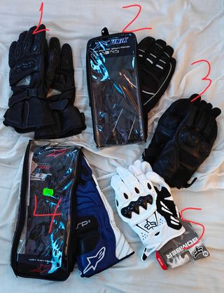 Varios guantes, si los quieres ver por separado están en mi perfil, tengo de 15 a 45 euros, el número uno, tres y el cinco están vendidos, los otros dos los ves en mi perfil ..es decir solo quedan el 2 y el 4