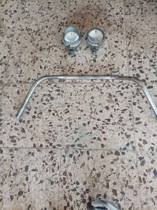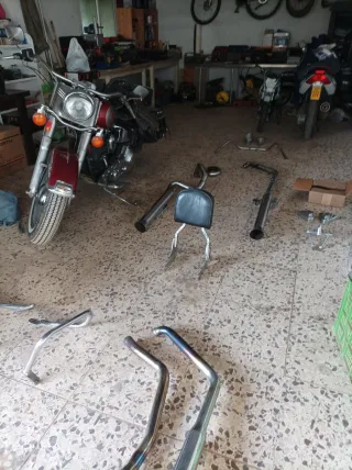 Conjunto de accesorios para motocicleta Harley Davidson 1340 Evo. - Manillar cromado original heritage 30 euros - Respaldo original con soporte 100 euros - Tubo de escape no homologado 100 euros 1 escape dual completo con sus colectores ,,,, vendido - Otros componentes metálicos. Defensa alforjas, vendido Embellecedor rueda trasera vendido Todo 130 euros para hacer sitio en garage , venta en persona