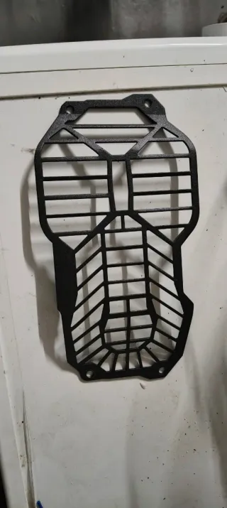 Protector de faro para BMW GS 1200. Fabricado en metal negro con un diseño de rejilla - Incluye soportes y tornillos de montaje, nunca usado - Diseño robusto.