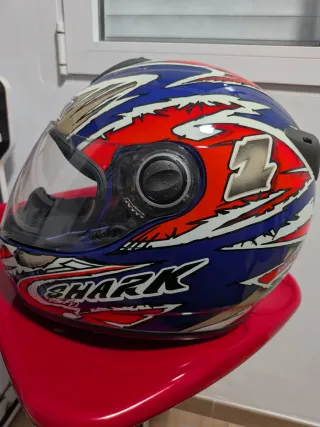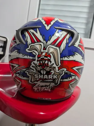 Casco integral Shark con diseño Union Jack, talla XL. Ideal para motociclismo. - Diseño llamativo con la bandera británica. - Talla XL. - Marca: Shark. - El casco se compró hace 15 años, se usó unos meses y no se volvió a usar. Jamás tuvo ningún golpe y se ha conservado perfectamente. (No realizo envíos.)