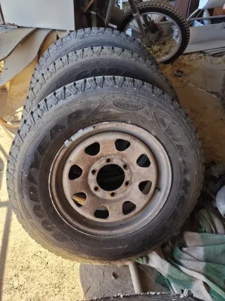 Juego de 4 ruedas para Nissan Patrol 260. - Marca Goodyear. - Llantas de acero. - Neumáticos todoterreno.