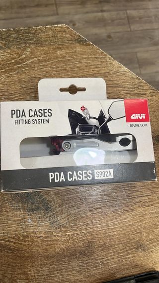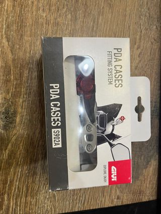 Soporte para dispositivos Givi S902A, nuevo a estrenar. Se entrega en su caja original. - Sistema de fijación PDA. - Incluye todos los componentes mostrados en las imágenes. - Color plata y rojo.