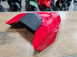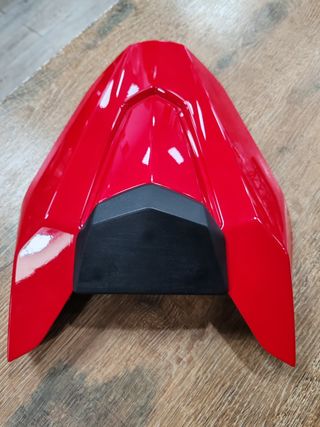 Tapa de asiento para Honda CBR 650 de los años 2019 y 2020. Pieza de color rojo brillante con un inserto central en color negro mate. Recambio original de Honda - Referencia: 77410-MKN-D50.