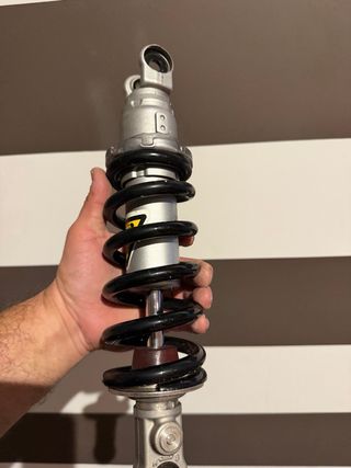 Amortiguador trasero original para Yamaha MT09 V2. Pieza de repuesto para tu moto. - Diseño robusto y duradero. - Acabado plateado y negro.