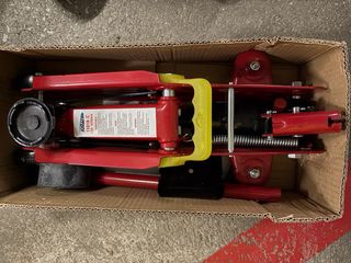 Gato hidráulico de 2 toneladas, ideal para levantar vehículos. Se encuentra en su maletín original. - Capacidad: 2 Toneladas. - Color: Rojo y negro. - Incluye maletín de transporte.