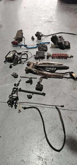 LEER BIEN: Solo se vende lo que ves,no hay nada mas.Conjunto de piezas de Yamaha XT600.VENDIDO YA: Carburador - Amortiguador trasero con muelle rojo. - Basculante. - Manillar. - Faro delantero. - Cables y otros componentes. Palabras enlace: Moto trail,moto clásica
