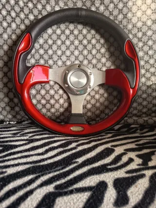 Volante deportivo con piña incluida. Diseño bicolor en rojo y negro. - Material: Polipiel. - Color: Negro y rojo. La unidad a 20€ y con piña 30€