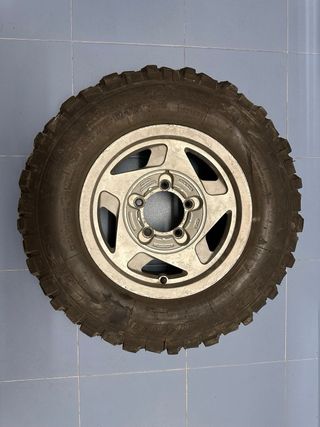 NO SE VENDEN LLANTAS O GOMAS POR SEPARADO NI SUELTAS. Entrega solo en mano. Juego COMPLETO de ruedas para Suzuki Vitara compuesto por 4 llantas de aleación marca Momo ET+3 ancho 7” 5x139,7 buje 110 (desplazan más de 2cm hacia fuera con respecto a las de serie) y 4 cubiertas Insa Turbo Sahara en medida 215/75R15 NUEVAS. Las gomas tienen 1000 km desde que se montaron. Están al 98/99%. NO están equilibradas. Se montaron tal cual para monte. Las llantas son bastante ligeras. Cada foto es de una rueda. Lara niva, jimny, samurai, Suzuki. Llantas. Insa Turbo. 4x4.