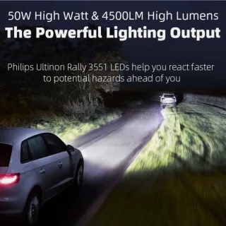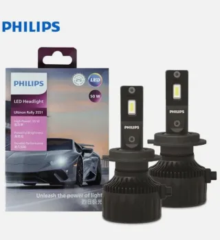Luces LED H4 Philips Ultinon Rally 3551. Potencia de 50W para una iluminación potente. - Modelo: Ultinon Rally 3551 - Tipo de bombilla: H4 LED - Potencia: 50 W - Marca: Philips