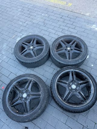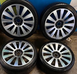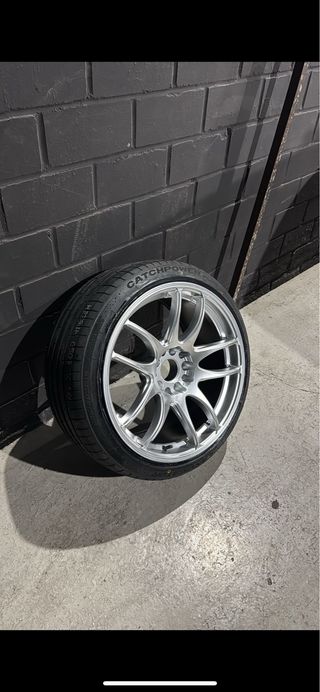 Pareja de llantas JR29 en color plateado. Están en perfecto estado. Gomas incluidas - Medida: 18x9,5 - Anclaje: 5x114,3/5x120 -ET22