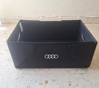 Organizador de maletero de la marca Audi. Es de color negro y cuenta con asas para facilitar su transporte. - Logo de Audi en blanco. - Diseño plegable. Sin estrenar.