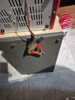 Pinzas de conexión para batería de coche. Son de color negro y rojo, están fabricadas en plástico resistente. - Cable de conexión. - Pinzas de sujeción.