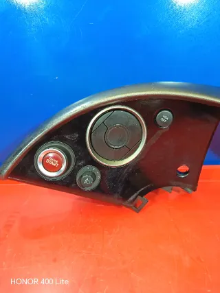 Panel con botón de arranque Engine Start y otros controles. panel de moldura del salpicadero de un Honda Civic de 5 puertas (FK). Incluye el botón rojo de "ENGINE START" y el botón "VSA OFF". Tiene controles circulares para la calefacción/aire acondicionado. Es una pieza de repuesto de segunda mano para modelos fabricados entre 2005 y 2012. La pieza es específica para el modelo 2.2 i-CTDi Sport. - Botón Engine Start en color rojo. - Control giratorio con símbolos. - Botón VSA OFF. M26983 M30424