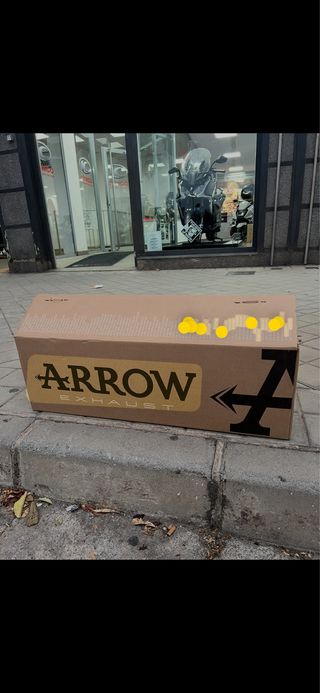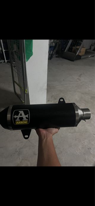 Escape deportivo Arrow en color negro. Diseñado para mejorar el rendimiento y el sonido de tu moto. - Logo de Arrow visible. - Fabricado en materiales resistentes. Para xmax 2020-2024 125cc