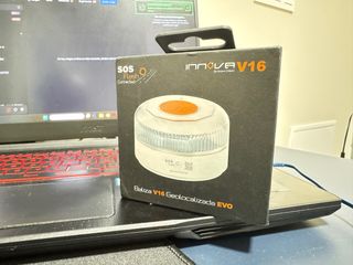 Baliza V16 de emergencia geolocalizable homologada por la DGT sin estrenar con su blíster - Marca: Raykong - Certificado DGT - Modelo: CH-020R - Con batería y GPS