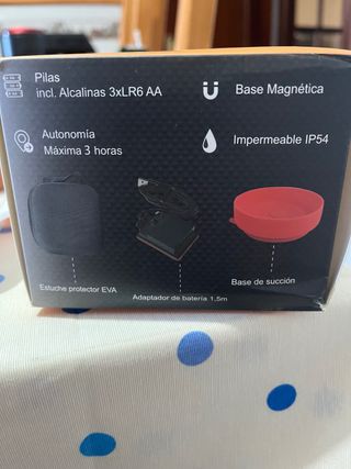 Baliza de emergencia V16 con múltiples accesorios. - Incluye pilas alcalinas 3xLR6 AA. - Autonomía máxima de 3 horas. - Base magnética. - Impermeable IP54. - Estuche protector EVA. - Adaptador de batería de 1,5m. - Base de succión.