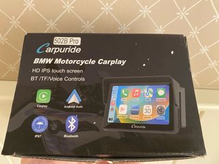 Pantalla Carplay para moto BMW y otras motos - Modelo 502B Pro. - Pantalla táctil HD IPS. - Compatible con Carplay y Android Auto. - Controles por voz, Bluetooth y TF. - Certificación IP67. Motos coches accesorios navegación GPS