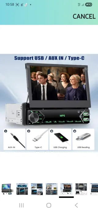 Radio para coche con sistema Android y compatibilidad con CarPlay. - Pantalla táctil. - Memoria interna de 64GB. - Incluye micrófono. - Compatible con cámara trasera.