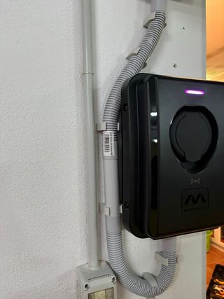 Cargador para vehículo eléctrico con conector Tipo 2 y una potencia de 7.4kW. - Diseño moderno en color negro. - Indicador LED de estado.