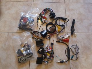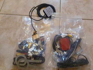 Lote de adaptadores y cables para la instalación de radios de coche. Incluye varios conectores y accesorios. - Diversos cables de conexión. - Adaptadores de antena. - Conectores RCA.