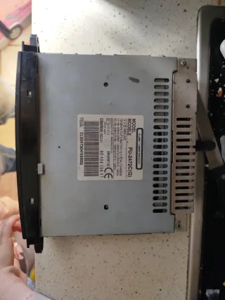 Radio original para Citroen Xsara fase 2. Panel frontal con botones y dial. - Botones numéricos del 1 al 6. - Botones de función: VOL, VAN, G, MAN, AUDIO, RDS, TA. - Dial giratorio. - Ranura para CD.