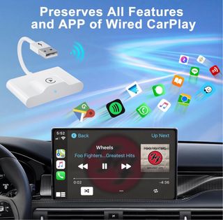 Convierte el CarPlay cableado a inalámbrico. 🚘 Compatible con coches a partir del 2017.✅ Facil conexión, se conecta automáticamente después del primer emparejamiento.👍