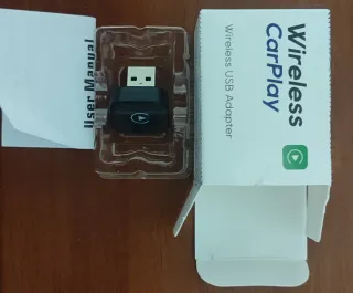Adaptador para CarPlay inalámbrico. - Conexión USB. - Incluye manual de usuario. Probado una sola vez para ver si me valía y no me vale para mí tipo de radio cassette.