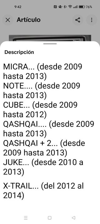 Pantalla multimedia nueva sin estrenar, comprada en casa nissan oficial y producto original. Es compatible con qashqai y xtrail última generación. Dispone de: - Sistema operativo Android. - Pantalla táctil. - Navegación GPS integrada. - Conexiones para cámara y otros dispositivos.