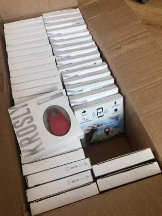 42 localizadores antiperdida GPS Krosly Tracker color rojo, conexión por bluetooth, pila incluida. Además también se puede usar como disparador remoto, para guardar localizaciones y realizar grabaciones de voz. Sin estrenar, en su caja original. Instrucciones en español. Ancho: 40 cm Fondo: 19 cm Alto: 10 cm